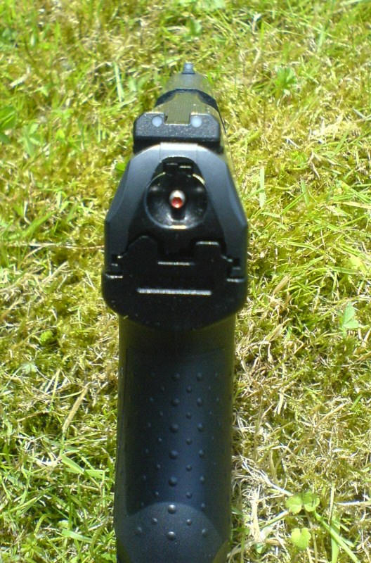 vor der Kimme. Mit einem markanten Geräusch entspannt die P99 und der Stift