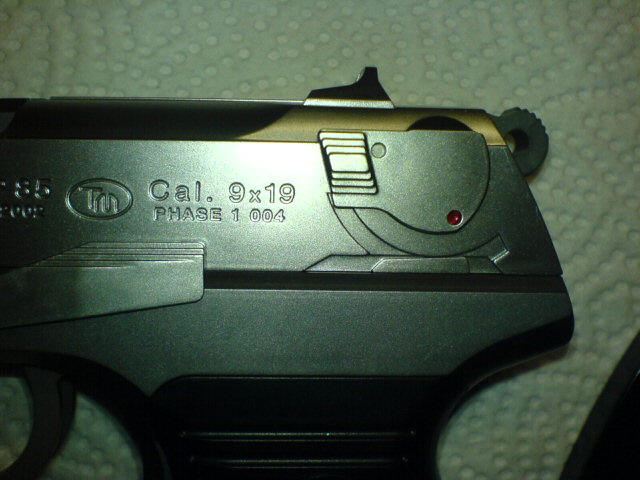 Kaliberangabe Cal. 9x19 und ein weiterer Hinweis auf den